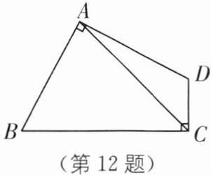 12. 如图,在四边形$ABCD$中,$\angle BAD = \angle BCD = 90^{\circ}$,$AB = AD$,若四边形$ABCD的面积是24cm^{2}$,则$AC$的长是______$cm$。