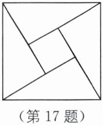 17. 传统文化 赵爽弦图 我国古代数学家赵爽的“勾股圆方图”是由四个全等的直角三角形与中间的一个小正方形拼成的一个大正方形(如图所示)。如果大正方形的面积是$13$,小正方形的面积是$1$,直角三角形的两直角边分别为$a$、$b$,那么$(a + b)^{2}$的值是______