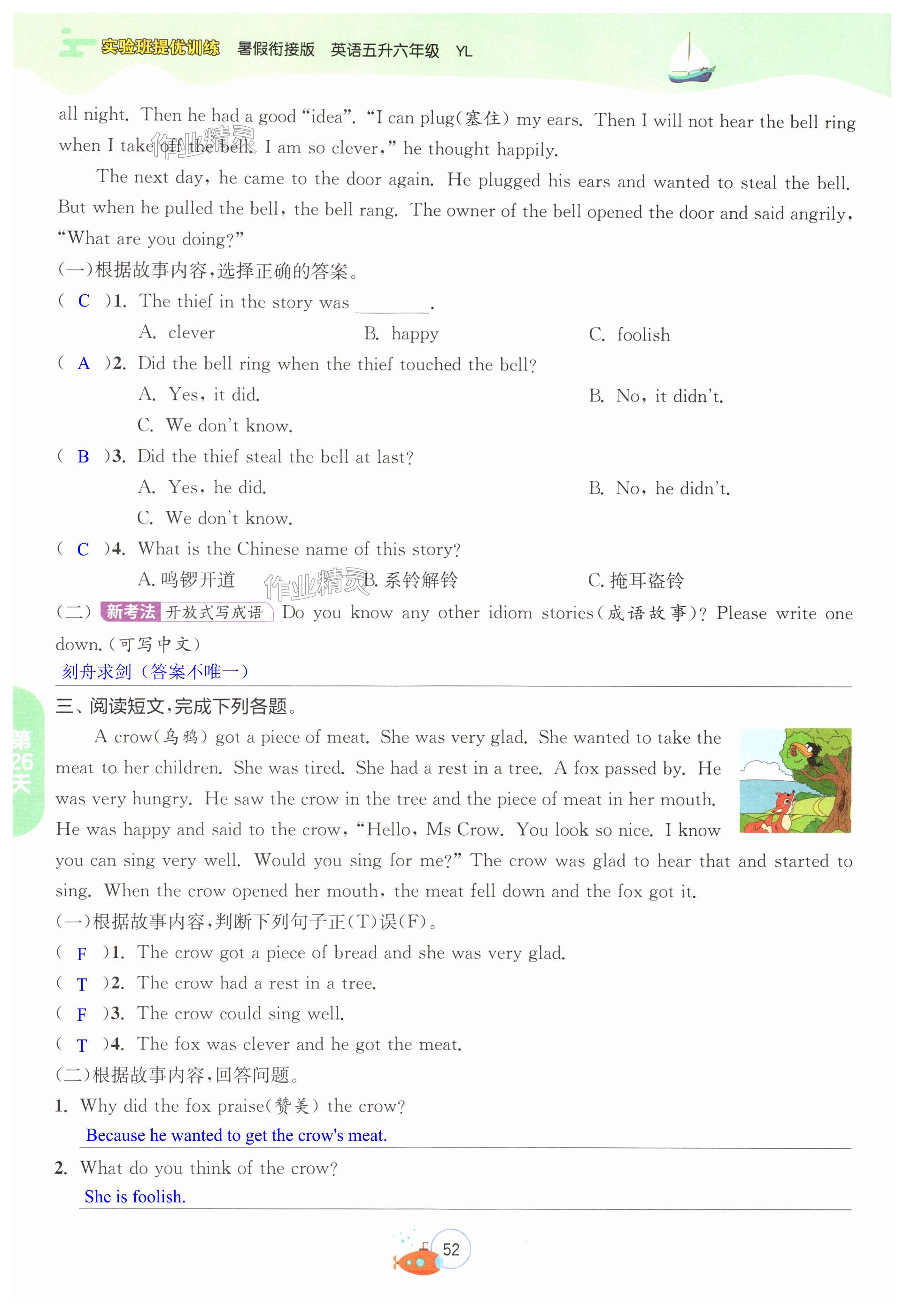 注:目前有些书本章节名称可能整理的还不是很完善,但都是按照顺序排列的,请同学们按照顺序仔细查找。练习册 2025年实验班提优训练暑假衔接版五升六年级英语译林版 答案主要是用来给同学们做完题方便对答案用的,请勿直接抄袭。