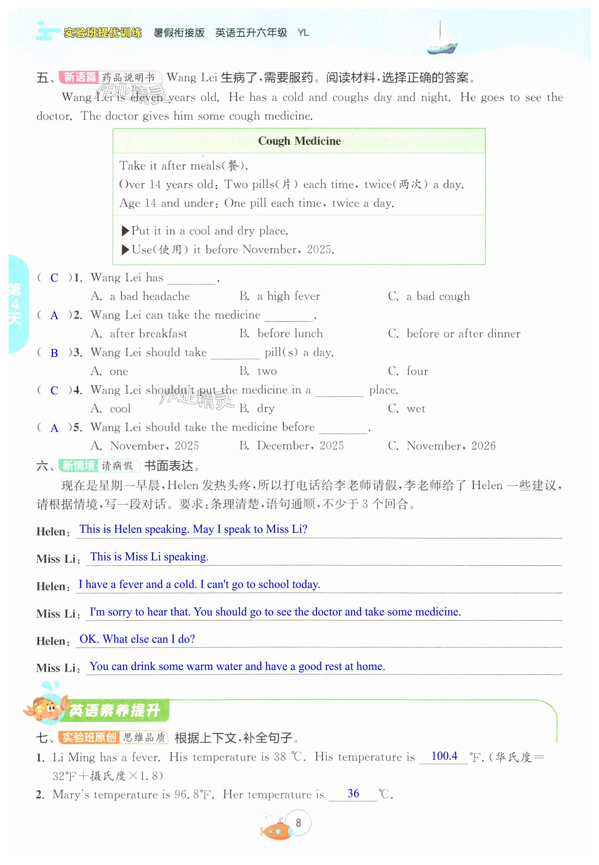 注:目前有些书本章节名称可能整理的还不是很完善,但都是按照顺序排列的,请同学们按照顺序仔细查找。练习册 2025年实验班提优训练暑假衔接版五升六年级英语译林版 答案主要是用来给同学们做完题方便对答案用的,请勿直接抄袭。