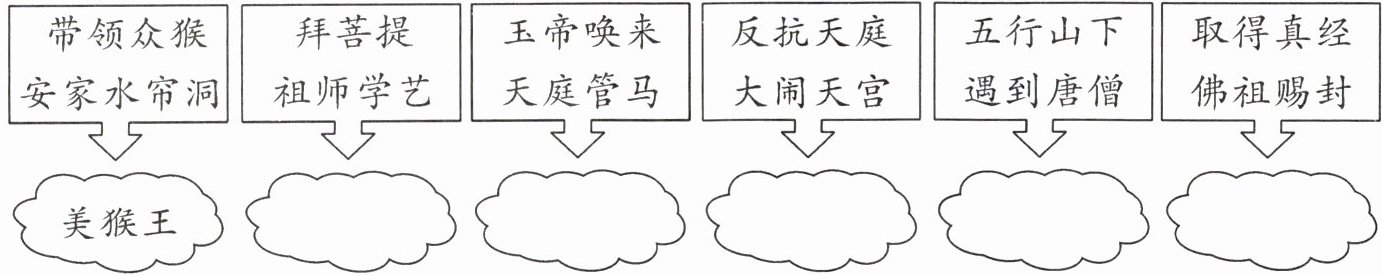 6. 实验班原创 文化自信 《西游记》是中国古代文学的瑰宝。妙妙假期时也阅读了《西游记》,在阅读时发现孙悟空有许多名号,请你帮她梳理一下孙悟空在不同时期的名号。