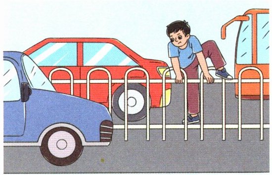 牛牛,你为了走近路,就从马路的防护栏上翻过去,这样做真危险呀!太不应该了。