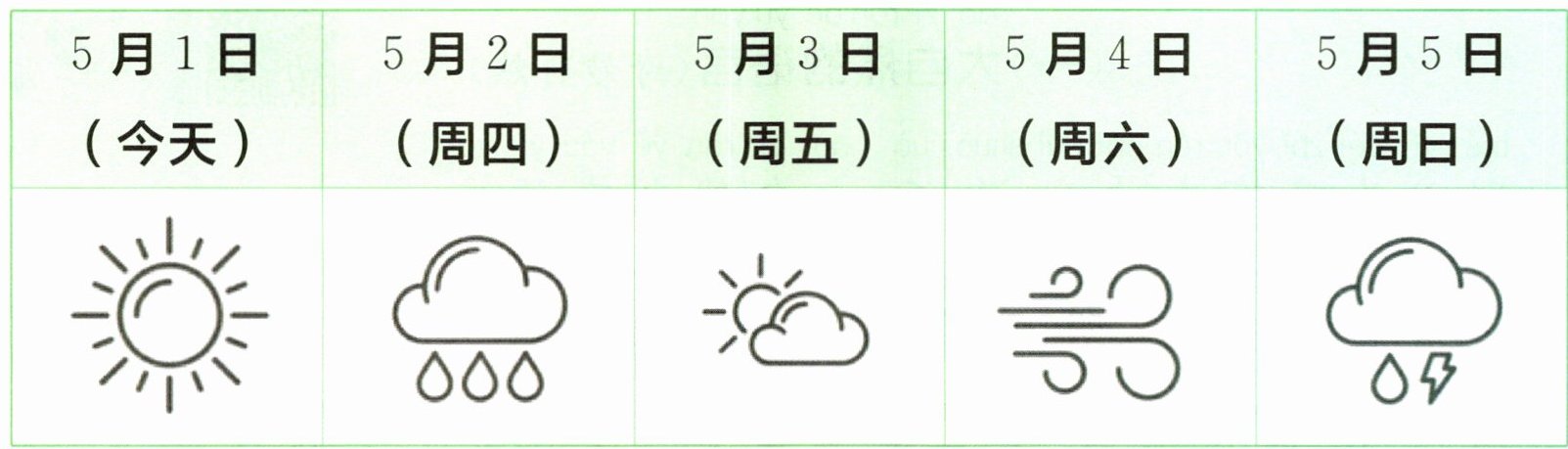 (三)根据天气预报,完成练习。(填序号)