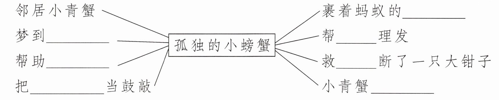 读了《孤独的小螃蟹》,你能根据这本书的内容完成思维导图吗?