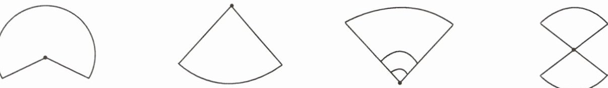 第三个图形:扇形有一条对称轴,为圆心角的角平分线所在的直线。