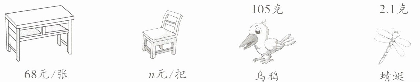 (1)一张桌子比一把椅子贵49元。(2)乌鸦的体重是蜻蜓体重的y倍。