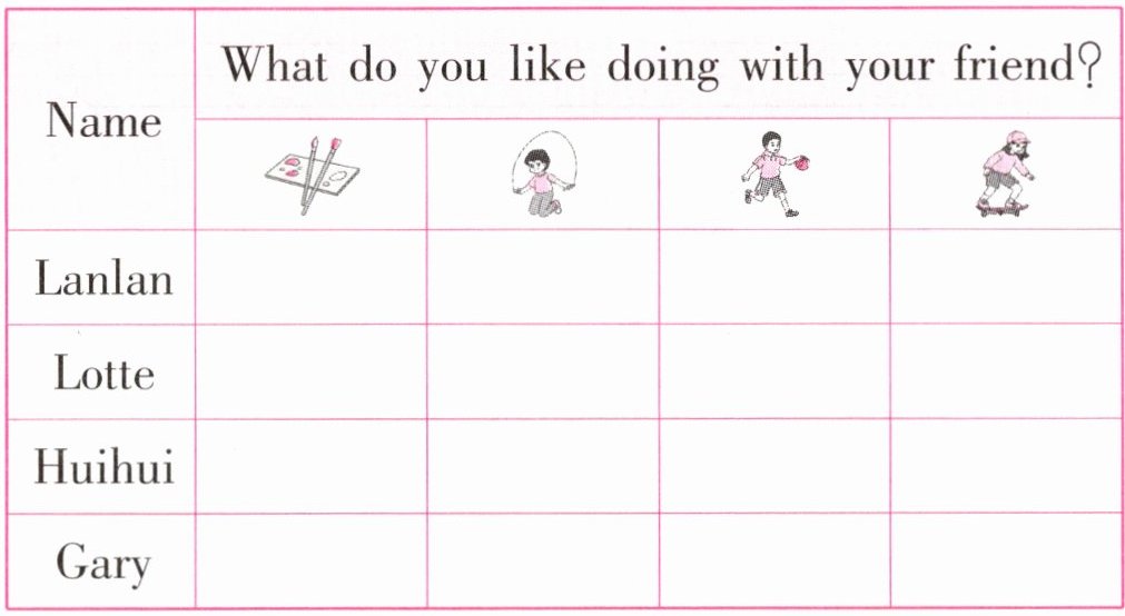 —No,I ________(do). We like ________(skip)together. It's fun.
