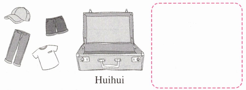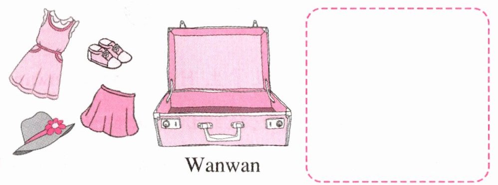一 通过此次夏令营,Huihui和Wanwan学会了自己整理行李。一起来看看出发前他们准备了哪些衣物吧,在框内写出对应的单词。