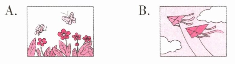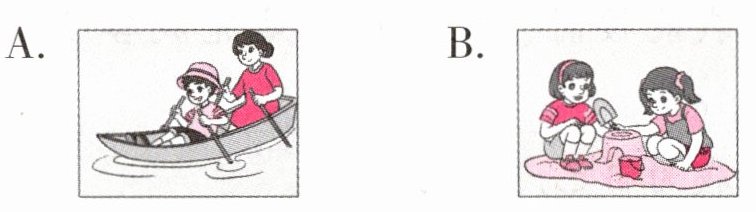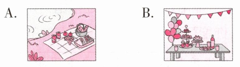 四 营员们来到了派对现场,请听录音,选出与句意相符的图片。