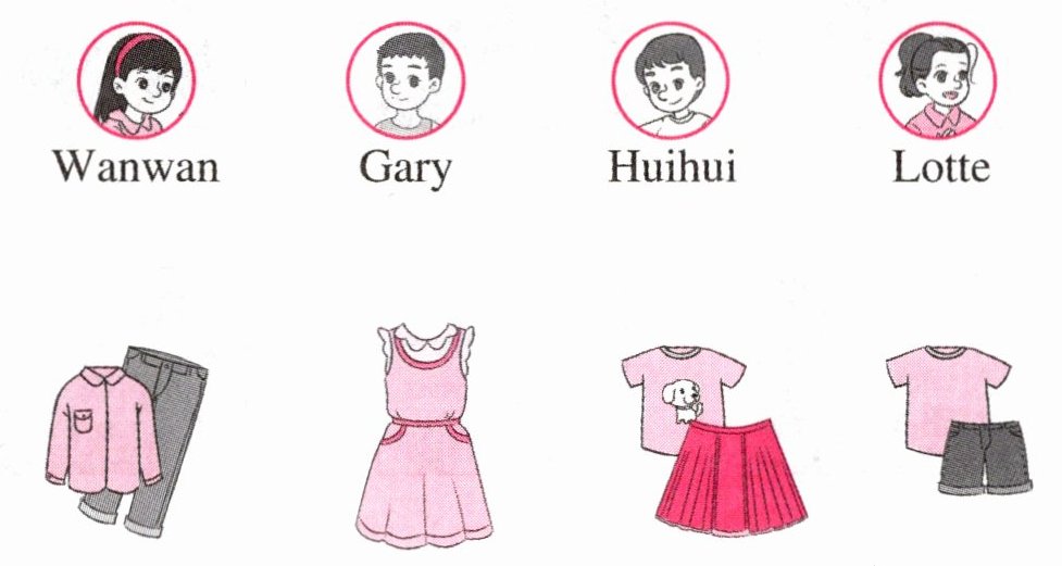 三 营员们选择了自己最喜欢的衣服,请听录音,连一连。