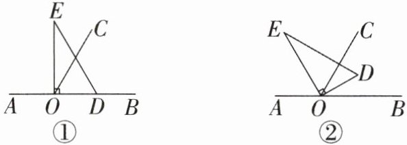 (1)如图①,若直角$△DOE$的边OD放在射线OB上,则$∠COE= $______