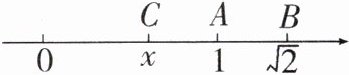 8. 如图,数轴上与$1,\sqrt{2}$对应的点分别为A,B,点B关于点A的对称点为点C,设点C表示的数为x,则x等于 (