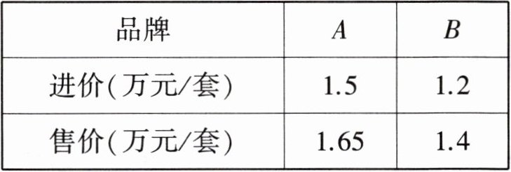 (1)该商场计划购进 $ A, B $ 两种品牌的教学设备各多少套?