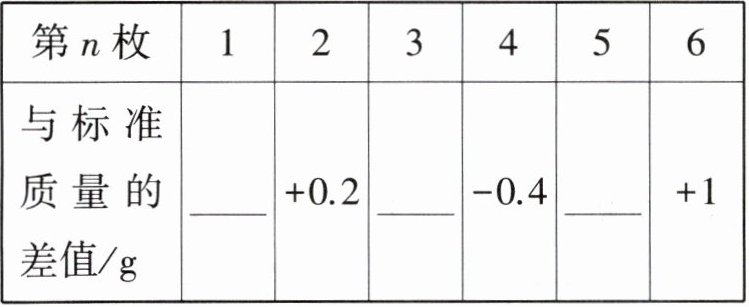 (1) -0.7 +0.8 -0.6 解析:因为$70.2-70=0.2(\mathrm{~g}), 69.6-70=-0.4(\mathrm{~g}), 71-70=1(\mathrm{~g})$,所以标准质量为$70 \mathrm{~g}$。
