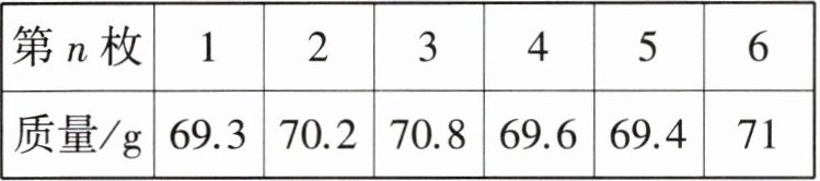 所以$69.3-70=-0.7(\mathrm{~g}), 70.8-70=+0.8(\mathrm{~g}), 69.4-70=-0.6(\mathrm{~g})$。