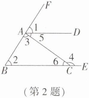 2. 如图,直线AD,BE被直线BF和AC所截,则$∠1的同位角和∠5$的内错角分别是(