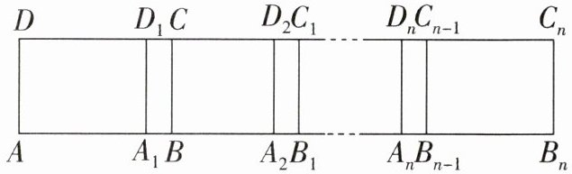 10. 如图,长方形$ABCD$中,$AB = 6$,第1次平移长方形$ABCD沿AB$的方向向右平移5个单位,得到长方形$A_{1}B_{1}C_{1}D_{1}$,第2次平移将长方形$A_{1}B_{1}C_{1}D_{1}沿A_{1}B_{1}$的方向向右平移5个单位,得到长方形$A_{2}B_{2}C_{2}D_{2}$……第$n次平移将长方形A_{n - 1}B_{n - 1}C_{n - 1}D_{n - 1}沿A_{n - 1}B_{n - 1}$的方向平移5个单位,得到长方形$A_{n}B_{n}C_{n}D_{n}(n > 2)$,若$AB_{n}$的长度为2026,则$n$的值为(