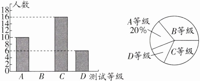 (2) 测试结果为 B 等级的学生数为 $ 50 - 10 - 16 - 6 = 18 $. 补全条形统计图略.