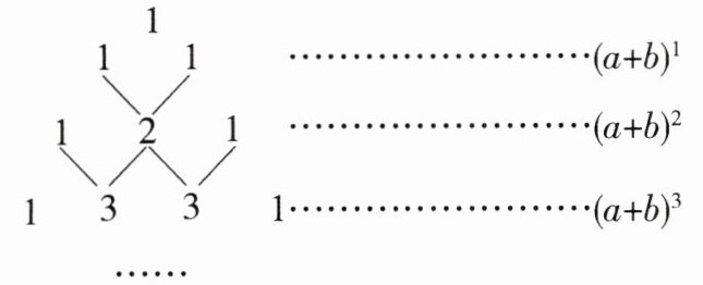 这个三角形的构造法则为:两腰上的数都是1,其余每个数均为其上方(左右)两数之和.事实上,这个三角形给出了$(a+b)^{n}$(n为正整数)的展开式(按a的次数由大到小的顺序排列)的系数规律.例如,在三角形中第三行的三个数1,2,1,恰好对应$(a+b)^{2}= a^{2}+2ab+b^{2}$展开式中各项的系数;第四行的四个数1,3,3,1,恰好对应$(a+b)^{3}= a^{3}+3a^{2}b+3ab^{2}+b^{3}$展开式中各项的系数等等.