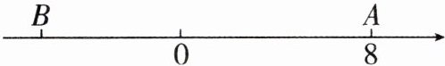 (1)-6 $8 - 5t$ 解析:因为点 A 表示的数为 8,B 是数轴上位于点 A 左侧的一点,$AB = 14$,所以点 B 表示的数为$8 - 14 = - 6$.因为动点 P 从点 A 出发,以每秒 5 个单位长度的速度沿数轴向左匀速运动,所以点 P 表示的数为$8 - 5t$.故答案为$- 6;8 - 5t$.