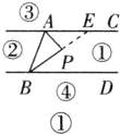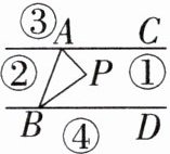 22. 如图,直线 $ AC // BD $,连接 $ AB $,直线 $ AC $,$ BD $ 及线段 $ AB $ 把平面分成①,②,③,④四个部分,规定:线上各点不属于任何部分。当动点 $ P $ 落在某个部分时,连接 $ PA $,$ PB $,构成 $ \angle PAC $,$ \angle APB $,$ \angle PBD $ 三个角。(提示:有公共端点的两条重合的射线所组成的角是 $ 0^\circ $ 角)
