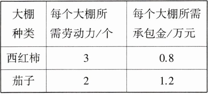 15. 某村40名村民筹集资金14万元,承包了本村西红柿和茄子两种塑料大棚.这两种塑料大棚的承包金和每个大棚所需的劳动力如下表: