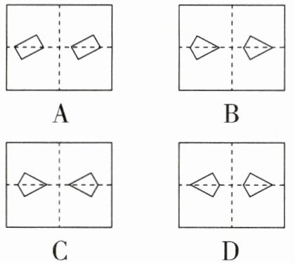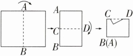 5. 如图所示,将长方形纸片先沿虚线$AB$按箭头方向向右对折,接着将对折后的纸片沿虚线$CD$向下对折,然后剪下一个小三角形,再将纸片打开,则展开图是 (