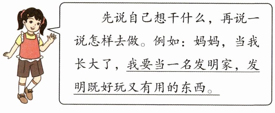 4. 小朋友,你长大后想干什么呢?请根据提示试着写一写,不会写的字可以用拼音代替。