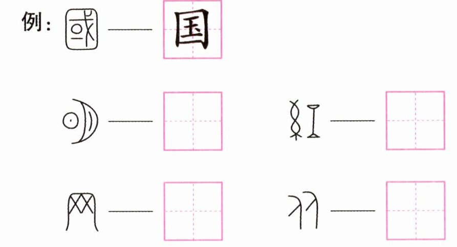 2. 照样子在田字格里写出对应的汉字。
