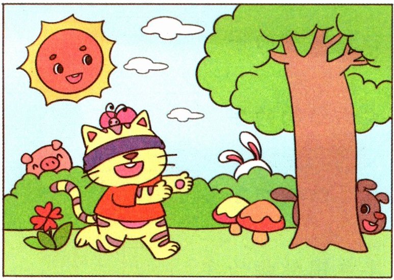 (关于自我评价涂气球部分,根据自己实际写作情况涂即可。如果故事写清楚了图上有小猫、小猪、小兔、小狗;写明了在森林里;语句通顺;写出了游戏情景(如躲藏、寻找等);没有错别字,就可以在对应的气球上涂色。)