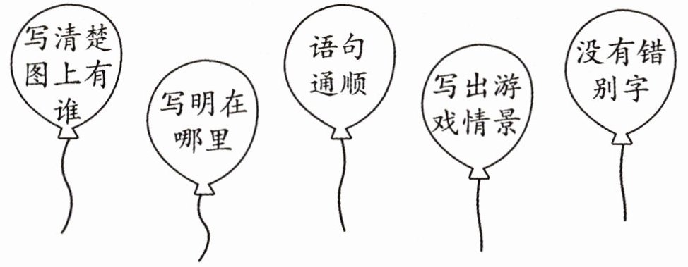 读一读,评一评,你觉得自己写得怎么样?你认为做得好的地方,就在对应气球上涂上你喜欢的颜色。