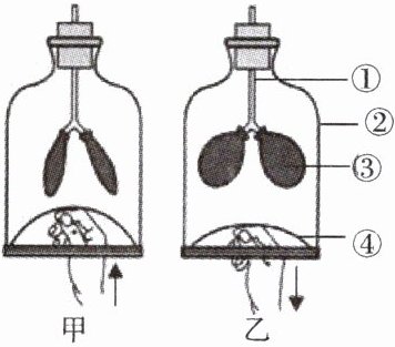 A.乙装置模拟呼气过程