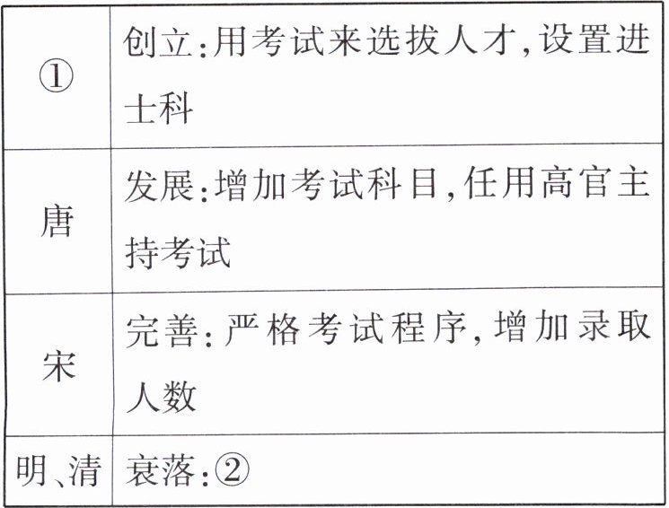 9.下表呈现了中国古代某项制度的历史沿革,其中①②处应填(