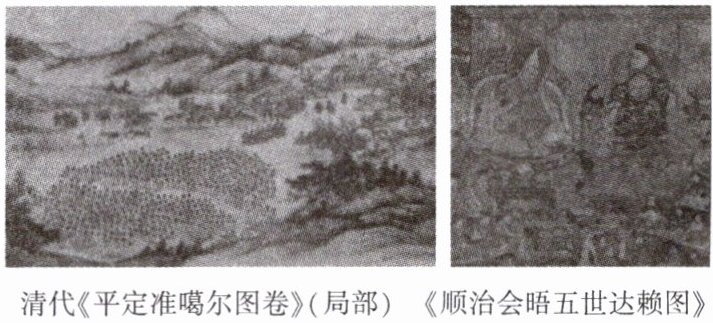 8.如图,两幅绘画作品反映清朝统治者处理民族问题的方式是 (