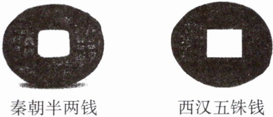 结合所学,指出两种钱币的出现对于经济的影响。秦朝半两钱统一币制,促进地区间商品交换;西汉五铢钱加强中央对经济控制,稳定经济秩序,促进商业繁荣