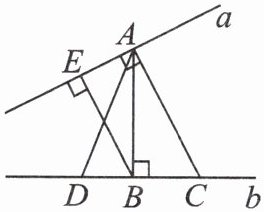 5. 如下图,点$A$,$E在直线a$上,点$B$,$C$,$D在直线b$上,$AB⊥b于点B$,$CA⊥a于点A$,$BE⊥a于点E$,下列线段的长度是点$A到直线b$的距离的是(