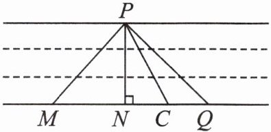 2. 如下图,要在河堤两岸搭建一座桥,搭建方式中最短的是线段$PN$,理由是(