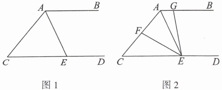 (2) 如图2,点F为线段AC上一点,连接EF,在射线AB上取点G,连接EG,使得∠GEF= ∠C。当∠AEF= 35°,∠GED= 2∠GEF时,求∠C的度数。