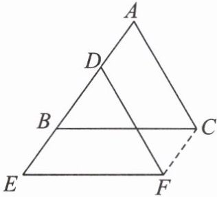 6. 如右图,将一个周长为a cm的三角形ABC沿射线AB方向平移后得到三角形DEF,点A,B,C的对应点分别是点D,E,F。连接CF,已知四边形AEFC的周长为b cm,那么平移的距离是