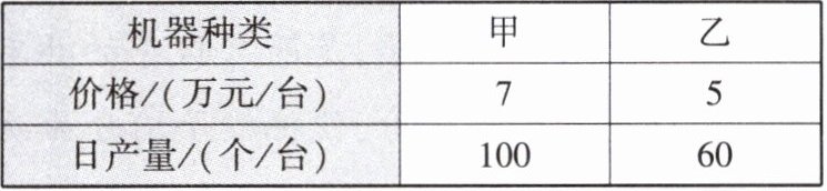 答:按该公司要求,可以有以下三种购买方案.方案一,购买甲种机器$0$台,乙种机器$6$台;方案二,购买甲种机器$1$台,乙种机器$5$台;方案三,购买甲种机器$2$台,乙种机器$4$台.