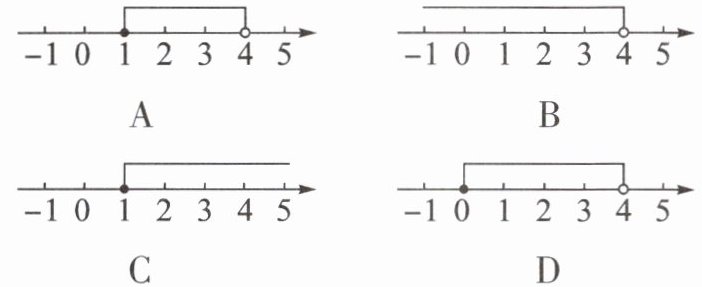 2. 不等式组$\left\{\begin{array}{l} 2x-1≥1,\\ 3(2-x)>-6\end{array} \right. $的解集在数轴上表示为(