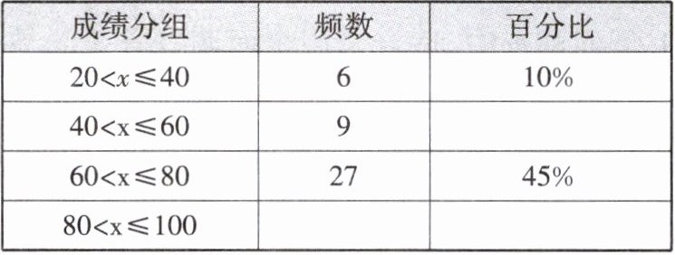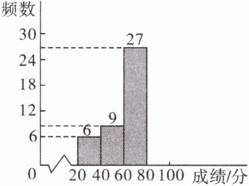 8.为了解学生对我国航天科技的知晓情况,某校七年级开展了“航天梦科普知识竞赛”活动,并随机抽取了部分同学的成绩(分值均为整数,满分为100分)绘制成如下两幅不完整的统计图表.