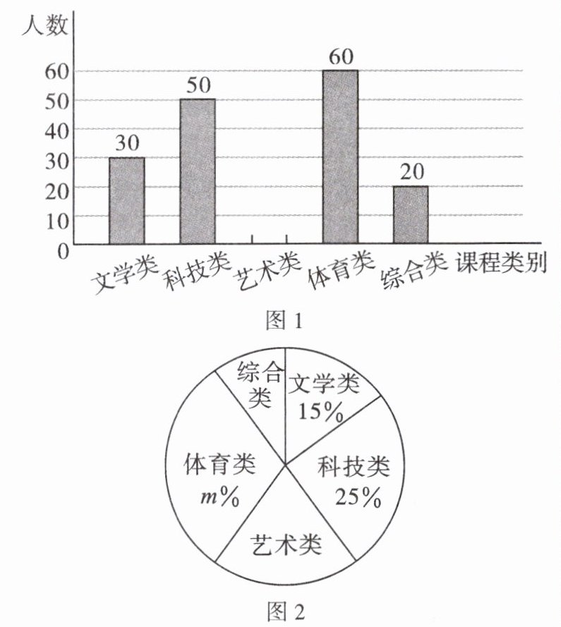 7.为满足学生的多元文化需求,促进学生身心健康发展,某校准备开展形式多样的特色课程.为了解学生对特色课程的喜爱程度,学校对部分学生进行了一次调查(每名学生仅选一种),并将调查结果绘制成了如下两幅不完整的统计图.