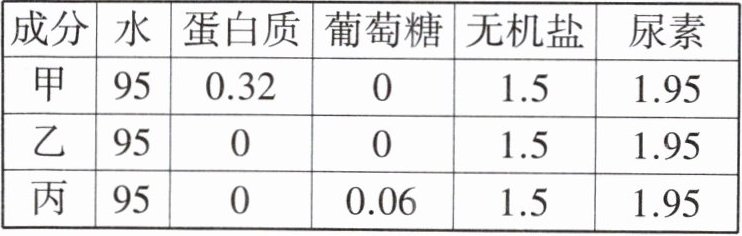 5. 人体内代谢废物主要依靠泌尿系统排出体外。甲、乙、丙三人的尿液化验单如下(单位:g/mL),可以作出的判断是 (