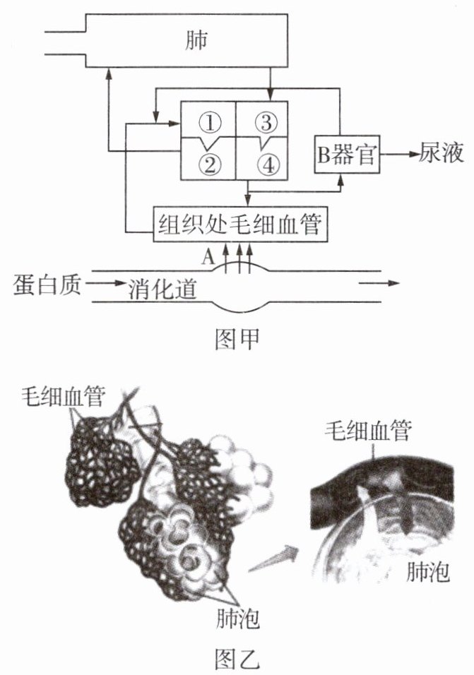 。(4) 图乙中,肺泡中的氧气进入血液要穿过