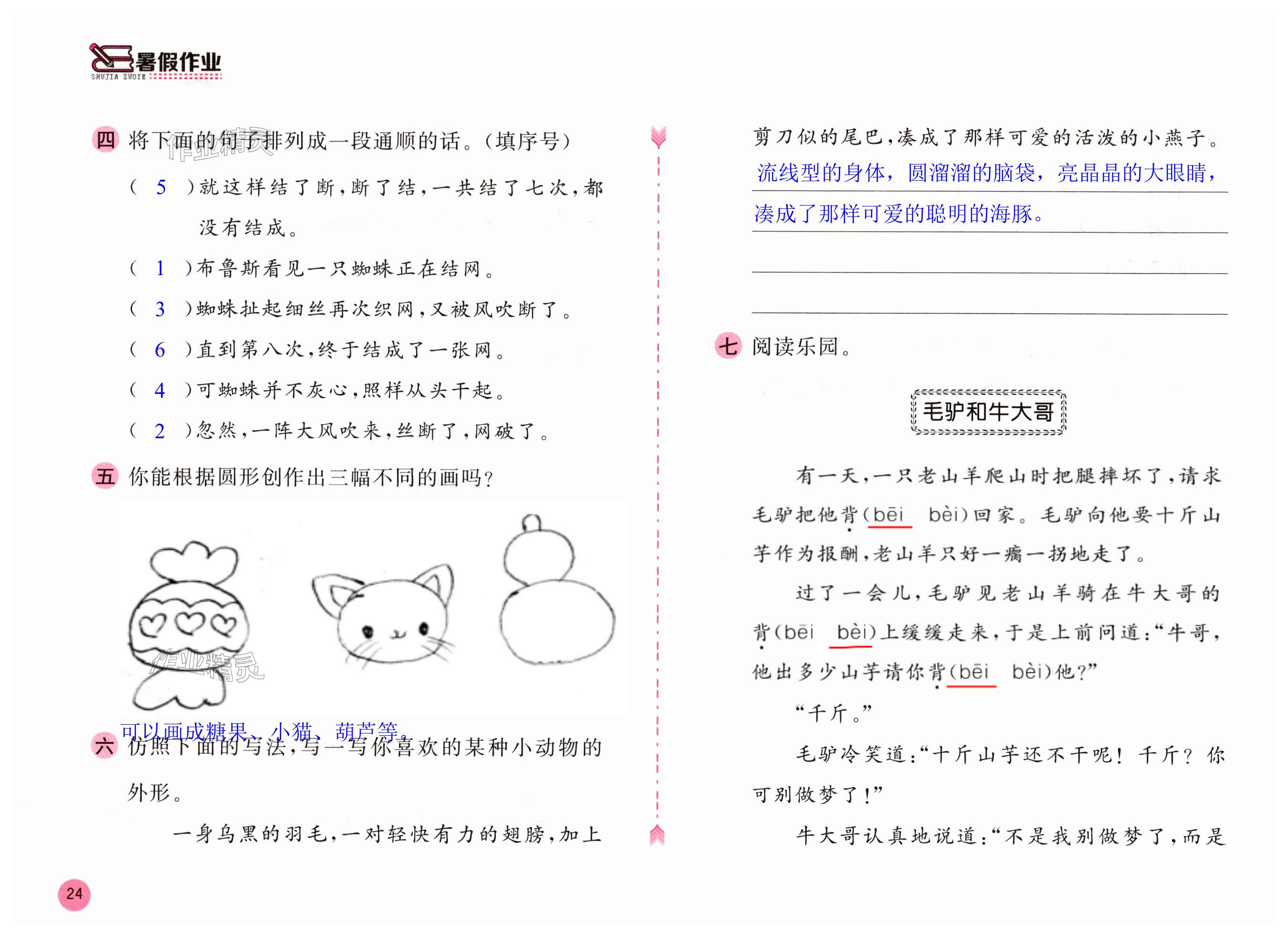 注:目前有些书本章节名称可能整理的还不是很完善,但都是按照顺序排列的,请同学们按照顺序仔细查找。练习册 2025年暑假作业安徽少年儿童出版社三年级语文人教版 答案主要是用来给同学们做完题方便对答案用的,请勿直接抄袭。