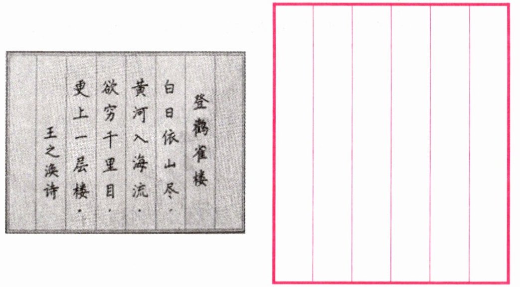 同学们,我们在五年级还学过竖款书写的方式。请你照样子写一幅王昌龄的《从军行$》