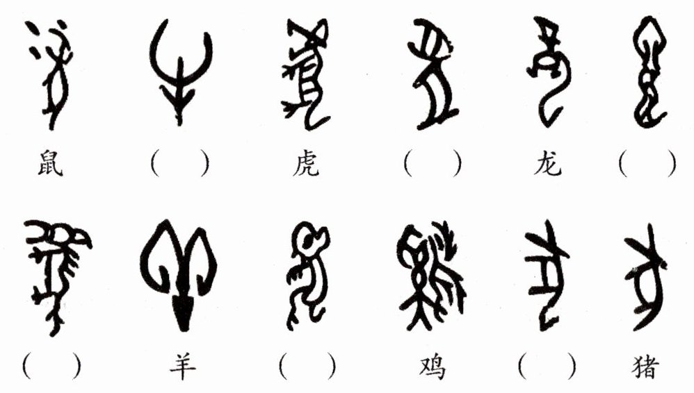 1. 这是十二生肖的甲骨文,你能填出剩下的几个吗?