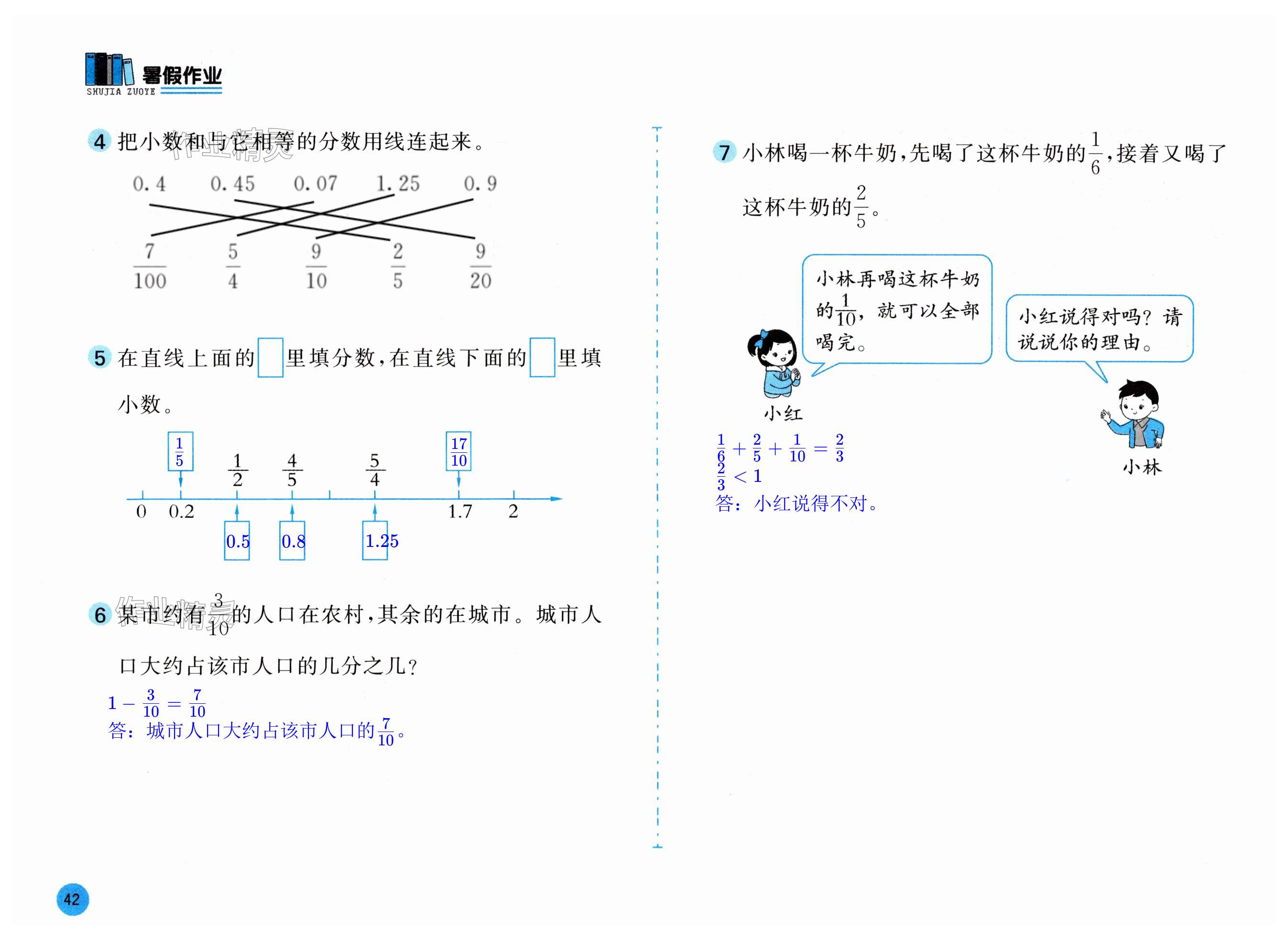 2025年暑假作业五年级数学人教版安徽少年儿童出版社