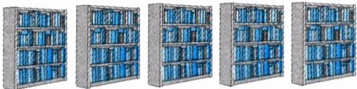 1 下图中每个书架有4层,每层放了23本书,5个书架一共放了多少本书?